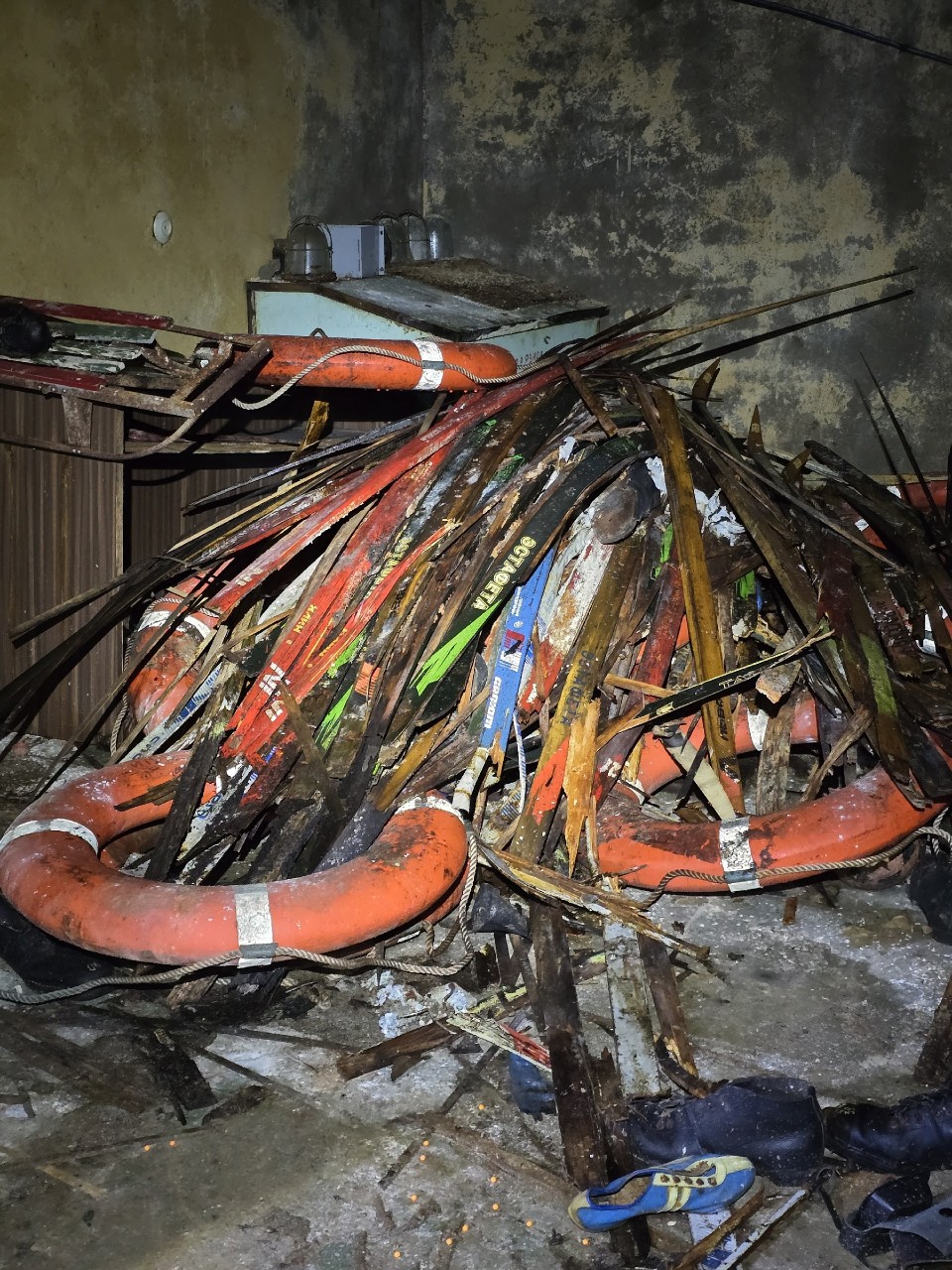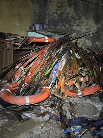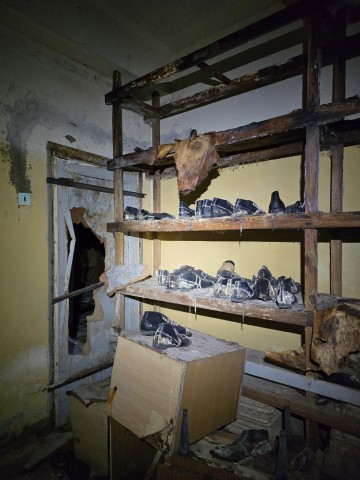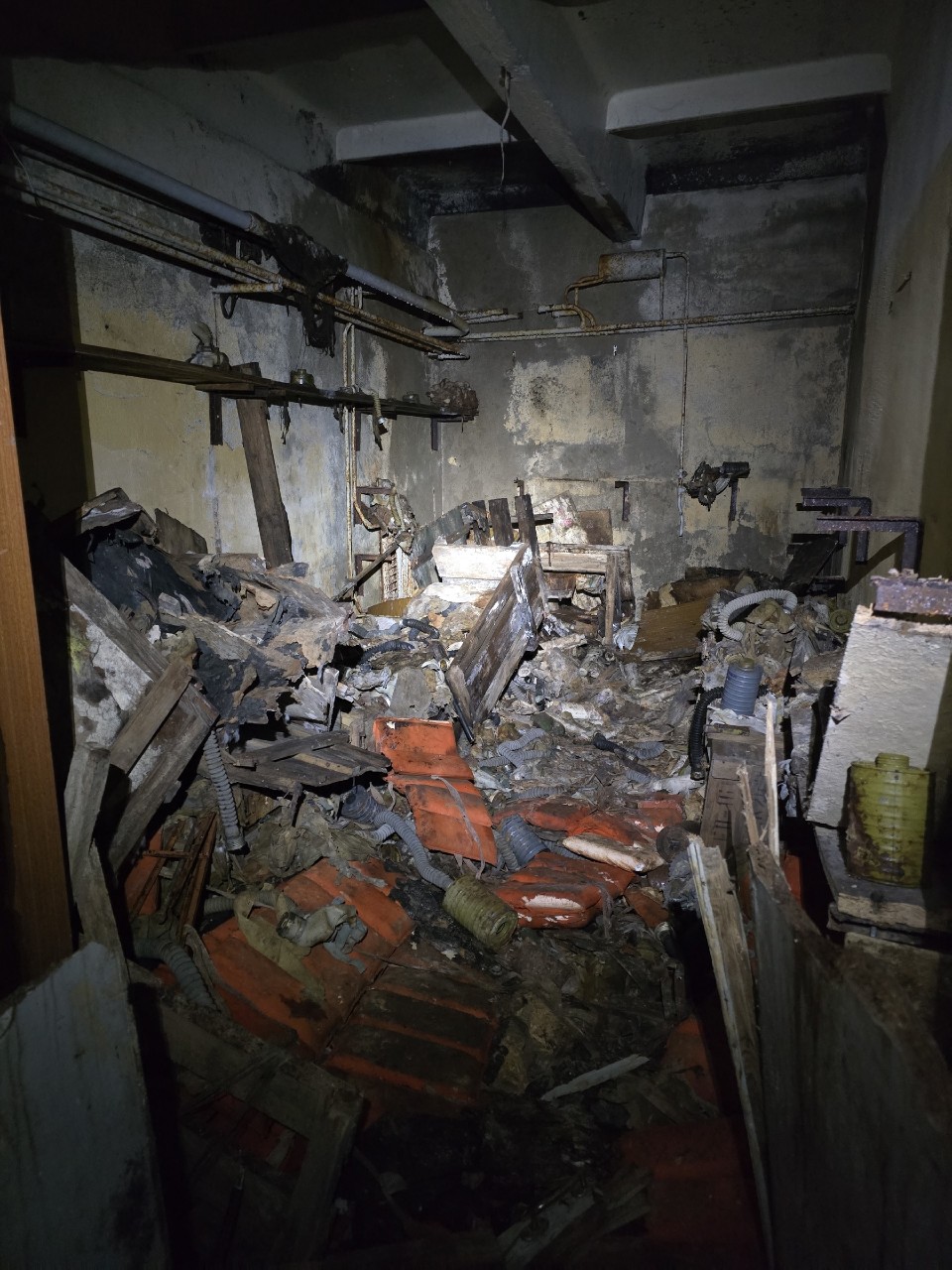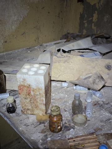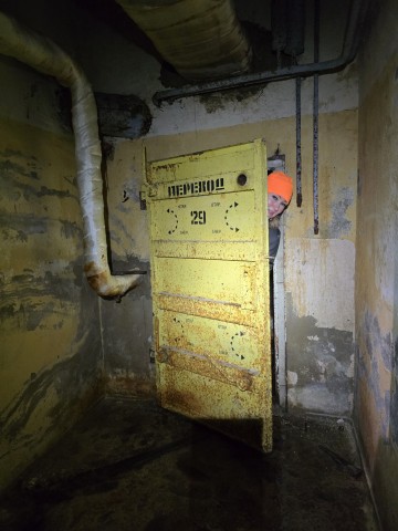 Привходовая часть, тамбуры и некоторые помещения захламлены инвентарём и отсырели от времени. В одной из комнат, множество ящиков с противогазами.