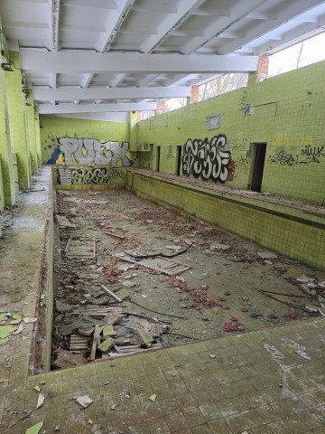 Как мы уже писали, в лагере мы обнаружили противорадиационное укрытие. Оно довольно большое, состоит из двух частей, соединенных переходом, имеет входы из столовой и административного корпуса, а также аварийный выход (тоже около столовой).