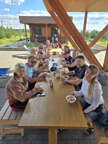 После чилла на тверских Мальдивах, аромат шурпы, приготовленной Алексеем, собрал всех к столу. Вкуснейший обед дал нам сил для захватывающего катания на сапах, с дальнейшим релаксом на базе.