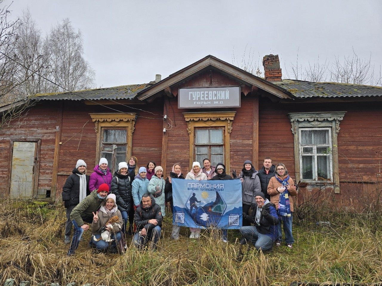 Музей деревянного зодчества, заброшенная узкоколейка, провинциальный городок и вечерний променад. 20 бравых путешественников и четвероногий друг.